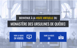 « Les Ursulines vous invitent à visiter leur Monastère du Vieux-Québec. Entrez dans ce lieu patrimonial recréé pour vous, en 3D. Vivez, au rythme de vos propres pas, l’expérience immersive de cette visite unique où les objets et les lieux ont tant d’histoires à vous raconter. »